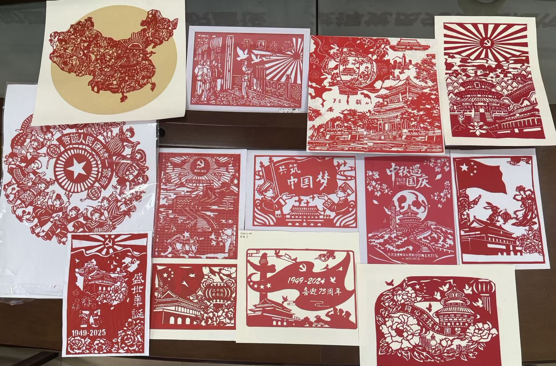 这些剪纸是艺苑学子对祖国的祝愿,更是文化基因的传承。当一幅幅作品拼成“祖国万岁”,红纸轻扬如焰,似无数颗心在为华诞跳动。这方寸红纸间的深情,正以最质朴的方式,把对祖国的礼赞,刻进每一道剪痕里。