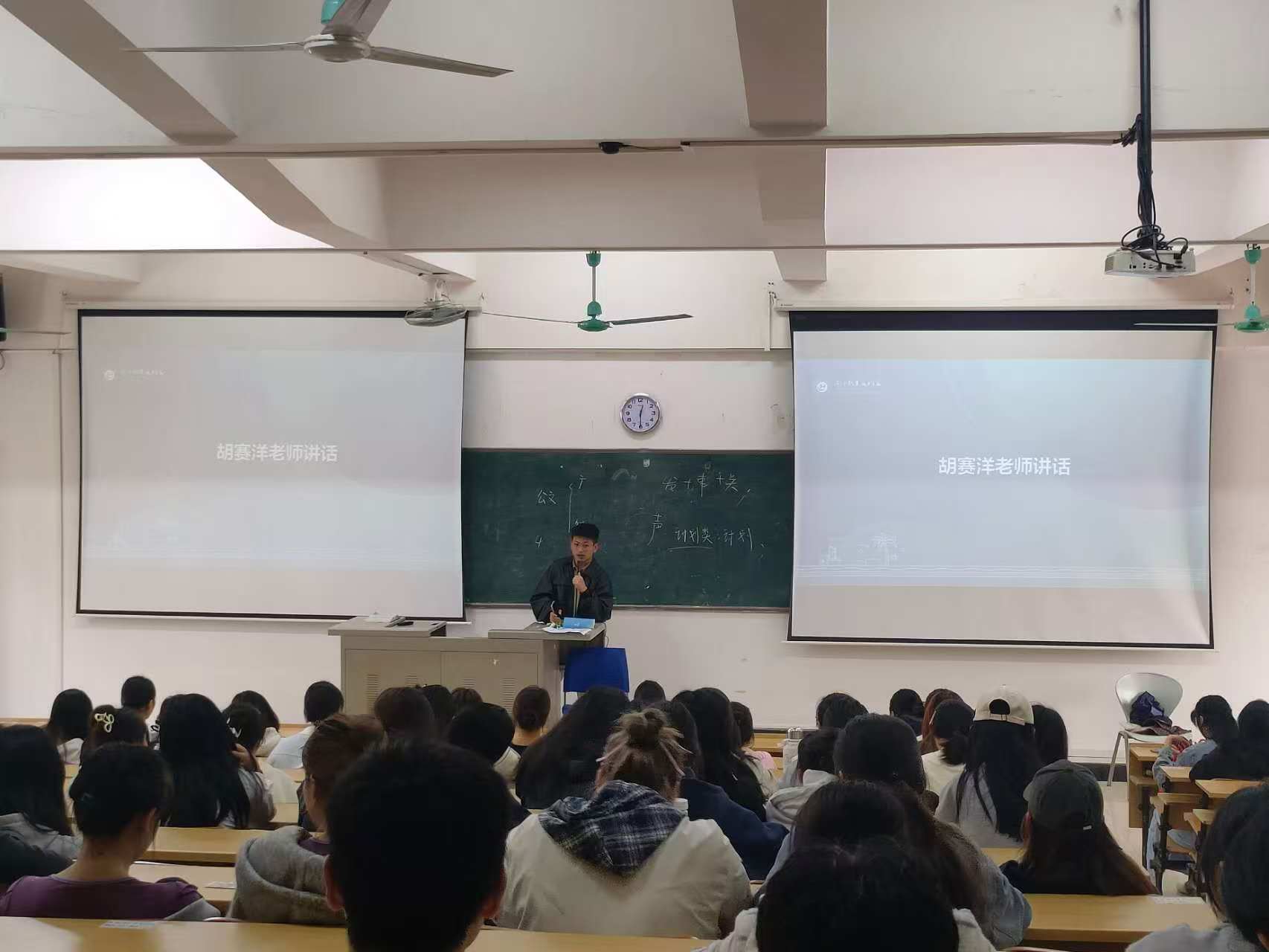 辅导员胡赛洋老师围绕宿舍检查机制,宿舍作息,以及宿舍违规事项三方面进行讲述。首先对宿舍日常检查机制进行说明:检查将采取每周 1 次例行检查 + 1 次突击检查的形式,同时不定期晚归抽查。并在本周三对未进行检查的宿舍补充检查。强调宿舍成员要将在个人卫生区域管理好基础上也打扫好公共卫生区域。规定宿舍作息时间,晚上23:50为规定熄灯时间;周一到周五门禁时间为23:30,周末为24:00。提醒同学们严格遵守时间,违反将给予处分。在宿舍突击检查违规电器过程中,胡赛洋老师严重强调到:违规电器在宿舍安全中存在极大隐患,如有发现将会被记入档案,影响团员、党员以及各类优秀评审。为营造良好的宿舍环境,请同学们杜绝使用违规电器。