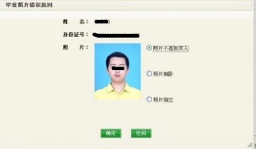 如果有误点“有误”,并出现右图,然后选择“照片不是我本人”,并到行政楼214教务处申请修改。
