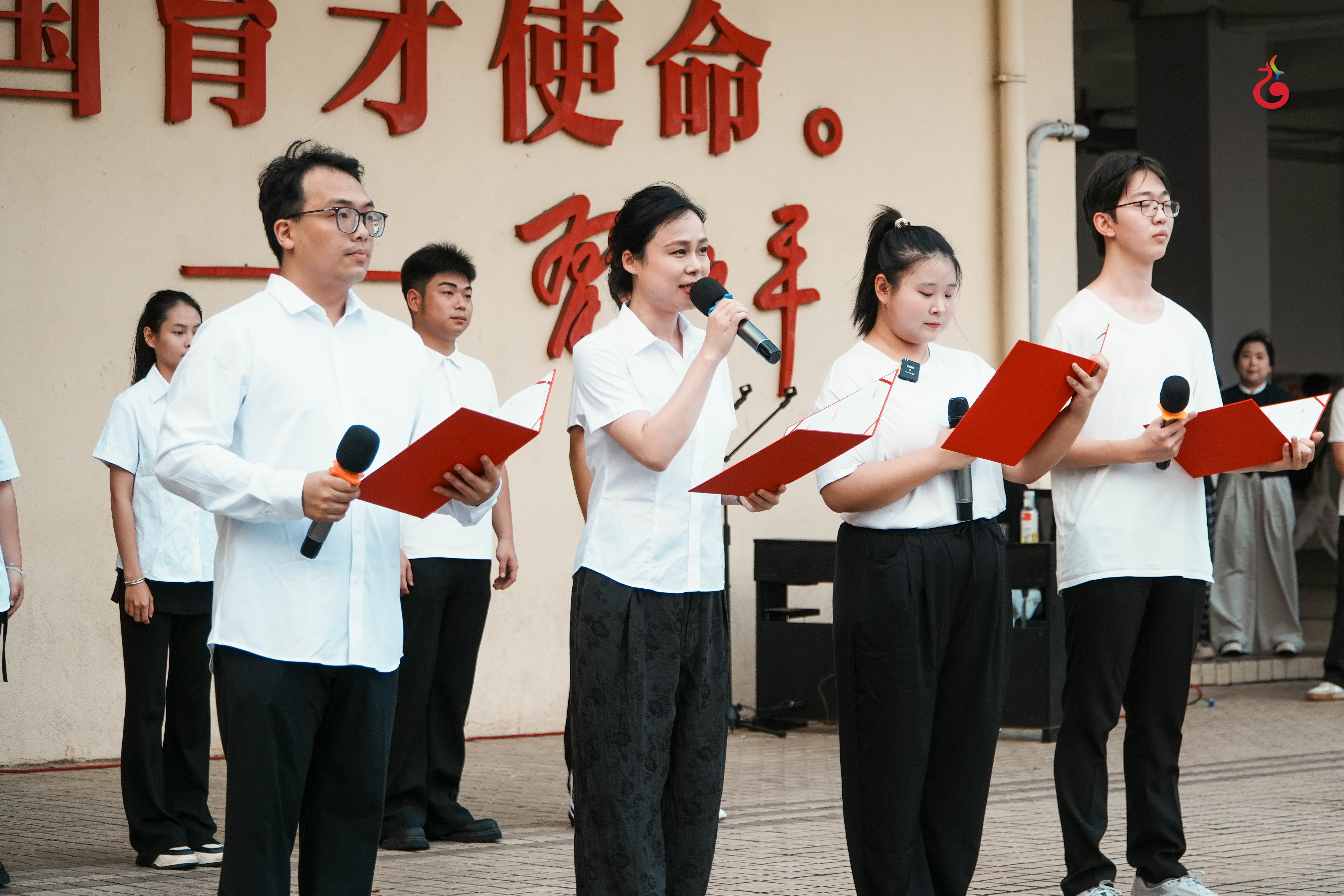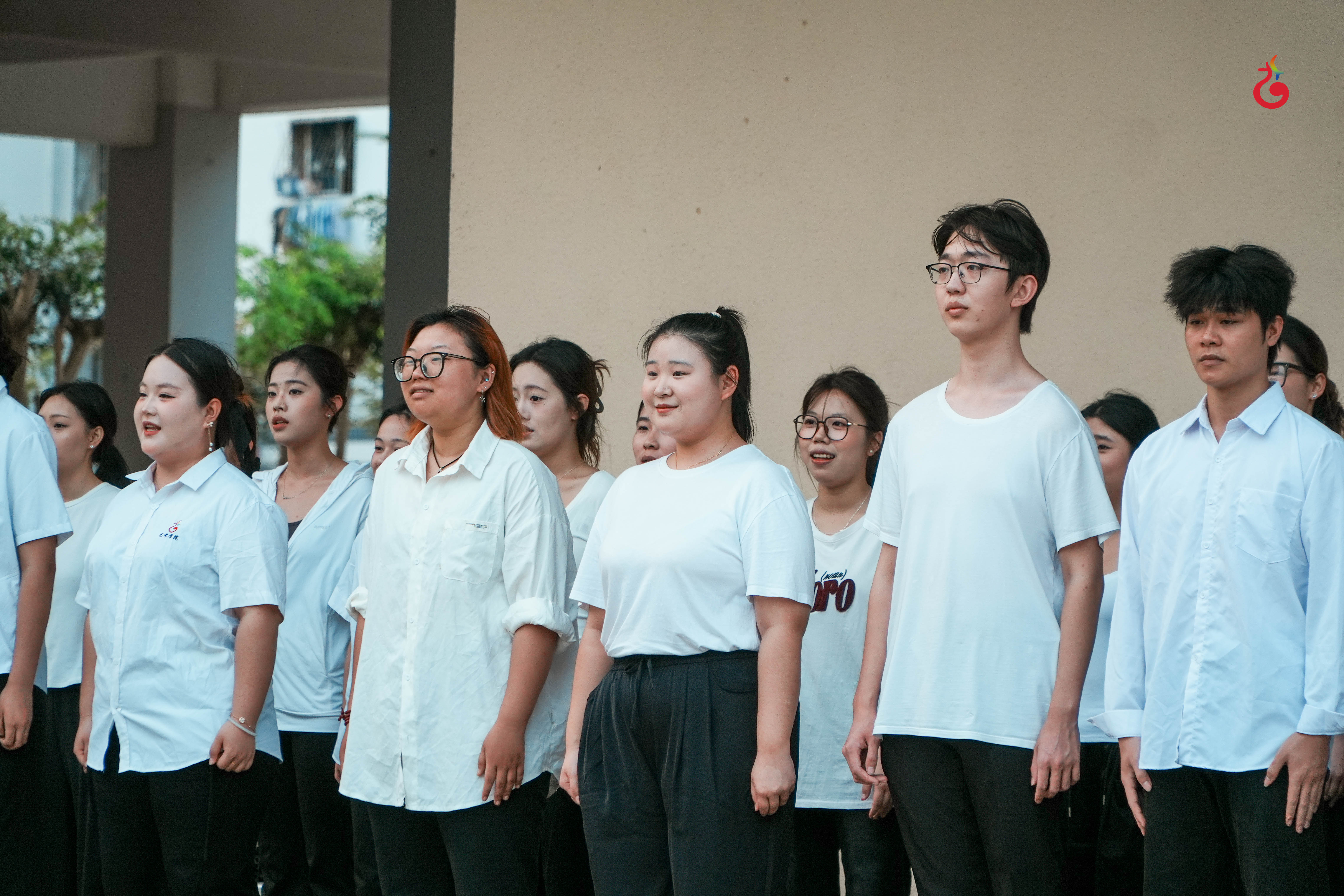 活动现场气氛热烈,高潮迭起。当《国际歌》的旋律响起,教学楼间穿梭的师生们纷纷驻足,循声聚拢,举起手机记录下这震撼一幕。参演学生以高亢嘹亮的歌声、刚劲有力的舞姿再现革命历史瞬间。演出结束后,现场学生反响热烈,2025级音乐班班长王润钰感慨道:“没想到党史还能这样学,听着这些歌,仿佛穿越回了那个热血年代,希望我们班也能参与进来。”不少学生纷纷表达期待,有的主动询问能否加入下一期的演出团队,红色信仰的种子在青年学子心中悄然扎根。